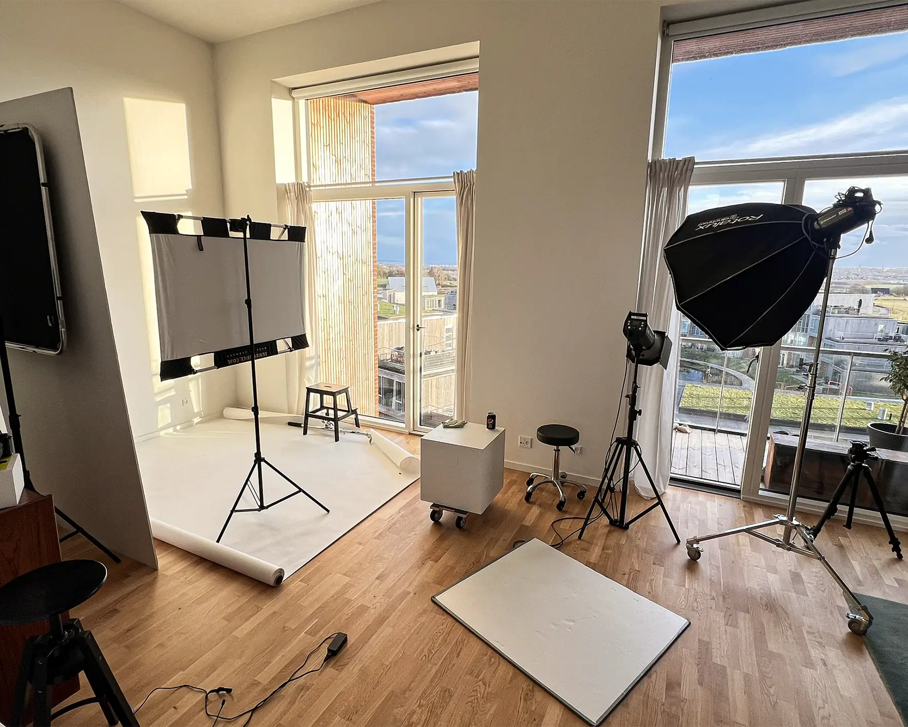 Mit nuværende studie ligger i Nye ved Aarhus. Her har jeg både mulighed for at lave billeder med dagslys og flash, og jeg har adgang til gode locations lige uden for døren.